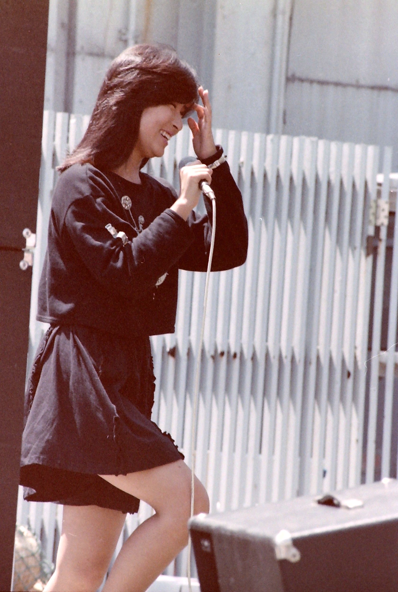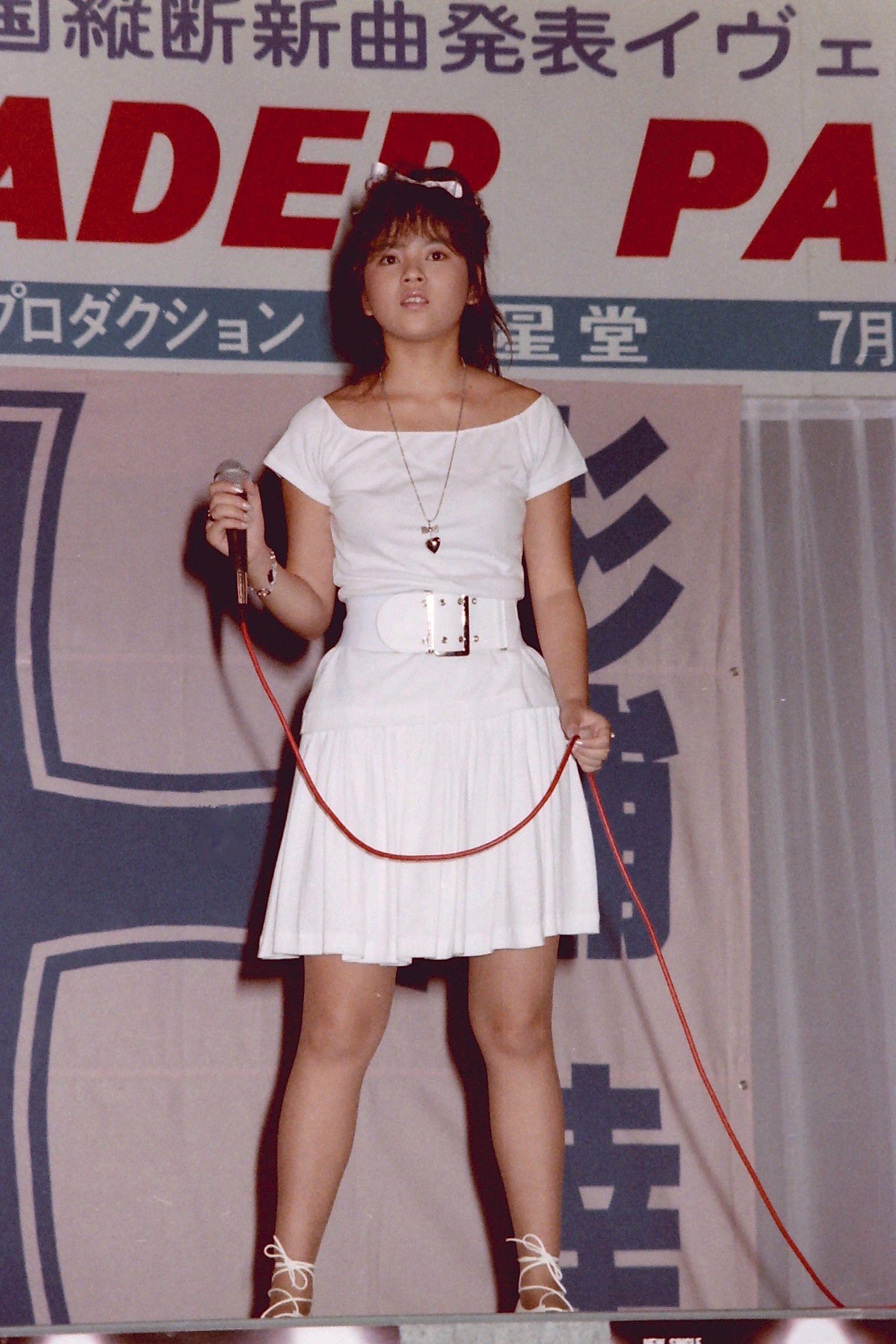 新宿NSビルで行われた山瀬まみちゃんのセカンドシングル「セシリア・Bの片思い」のキャンペーンでこんなに短いミニスカートに衣装で来ました。