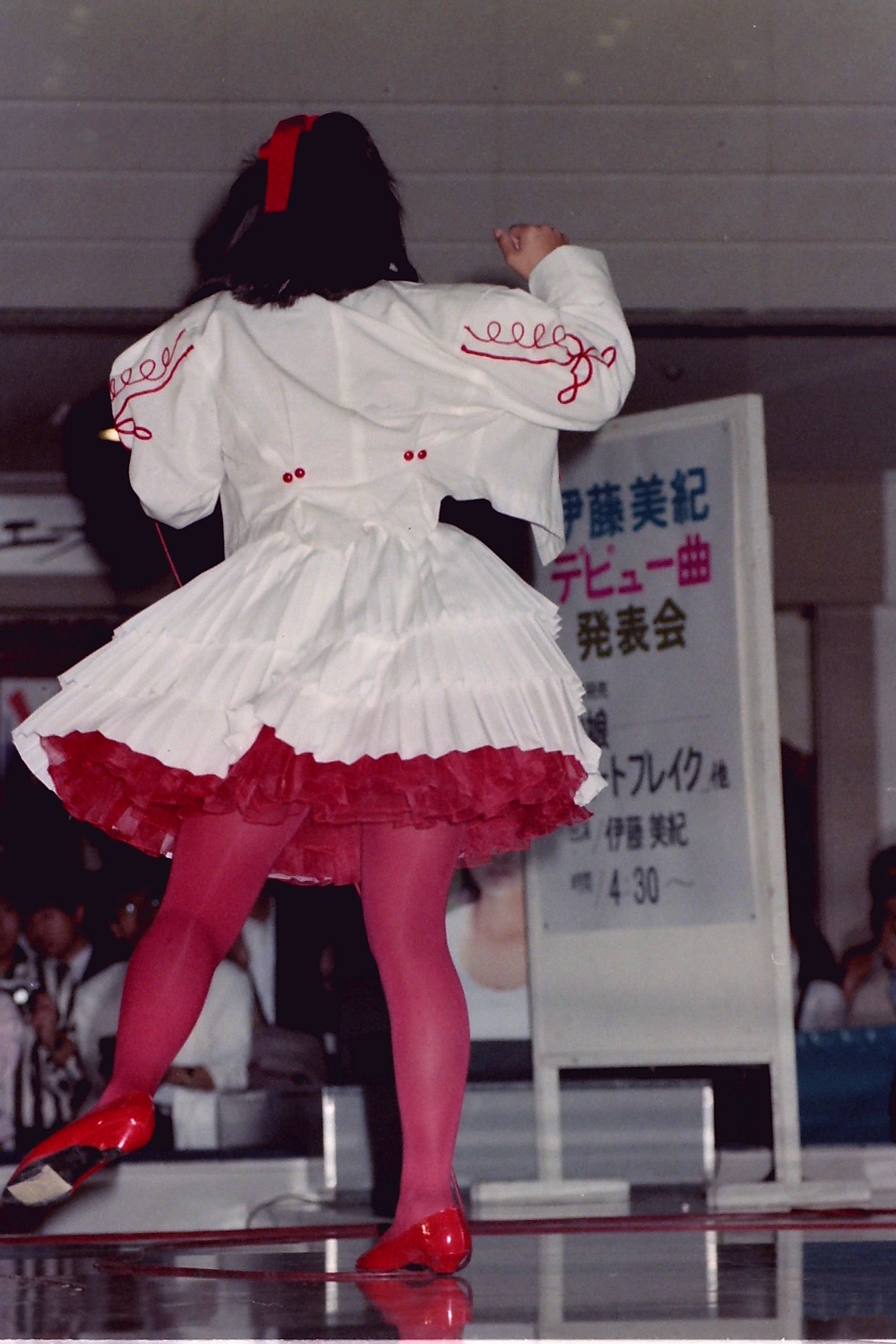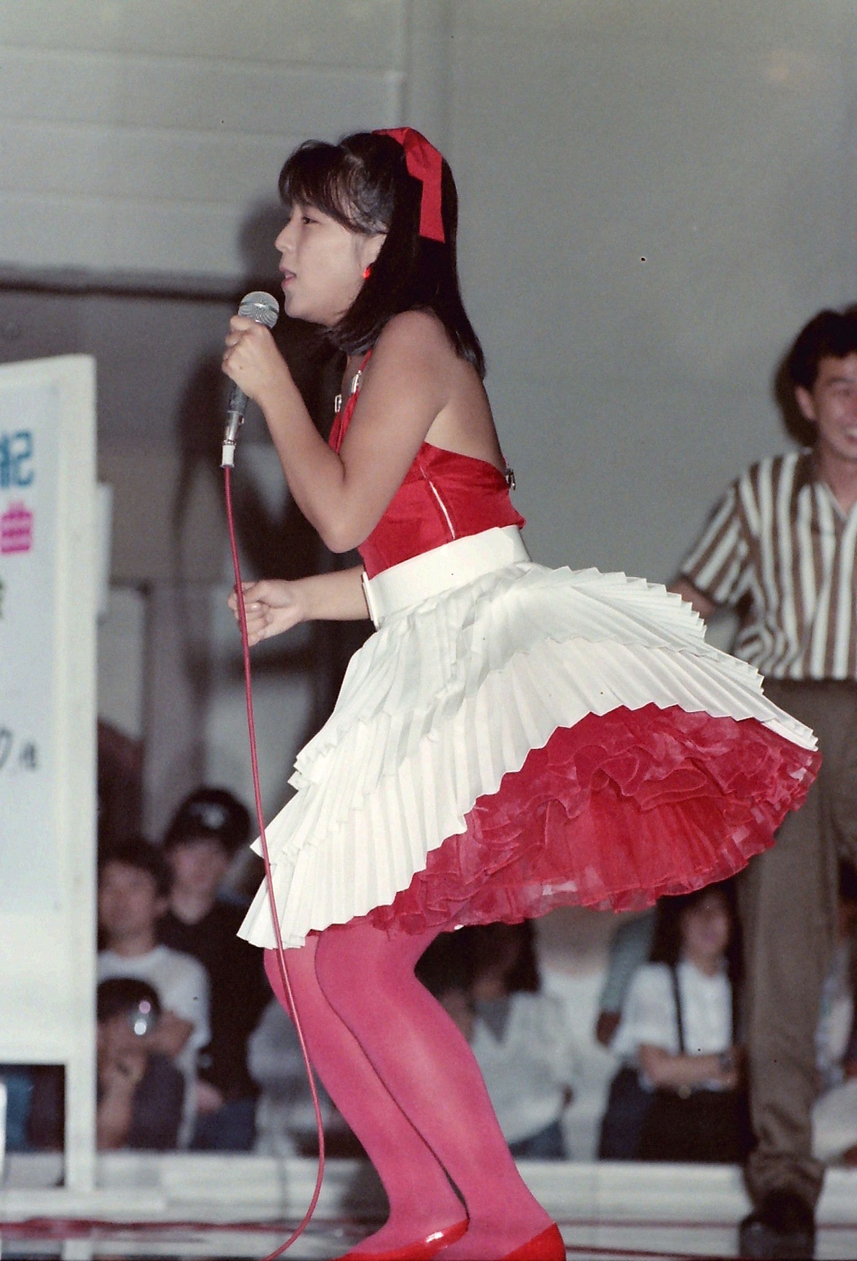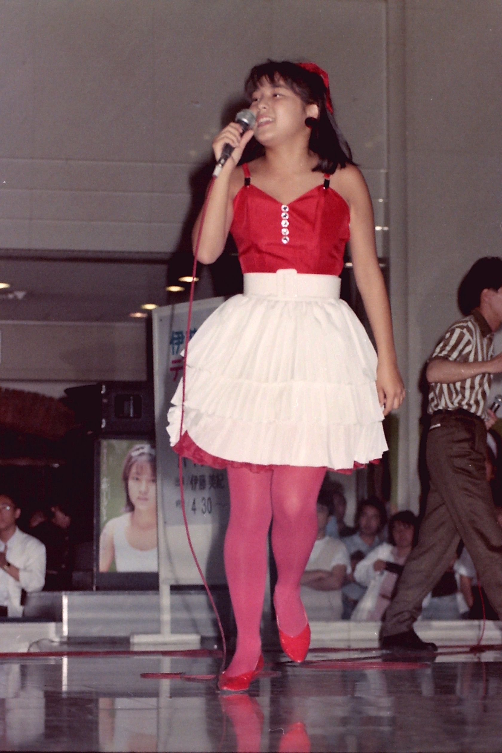 昭島モリタウン・エスパで行われた、「バージンタッチ・ツアーⅡ」の歌とサイン会です。まずは、司会のお姉さんに軽く遊ばれているところです。